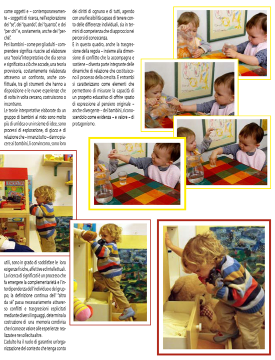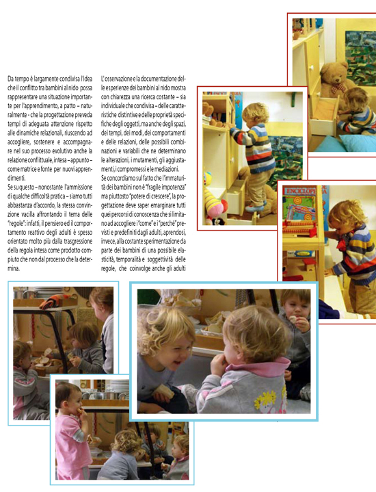 Le Buone Pratiche Anche contro le regole Il conflitto come ingrediente costruttivo nell'esperienza dei bambini di Aldo Fortunati, Gloria Tognetti e Sara Zingoni Da tempo è largamente condivisa l'idea che il conflitto tra bambini al nido possa rappresentare una situazione importante per l'apprendimento, a patto – naturalmente - che la progettazione preveda tempi di adeguata attenzione rispetto alle dinamiche relazionali, riuscendo ad accogliere, sostenere e accompagnare nel suo processo evolutivo anche la relazione conflittuale, intesa – appunto – come matrice e fonte per nuovi apprendimenti. Se su questo – nonostante l'ammissione di qualche difficoltà pratica – siamo tutti abbastanza d'accordo, la stessa convinzione vacilla affrontando il tema delle "regole": infatti, il pensiero ed il comportamento reattivo degli adulti è spesso orientato molto più dalla trasgressione della regola intesa come prodotto compiuto che non dal processo che la determina. ![]() ![]() Le Buone Pratiche |
