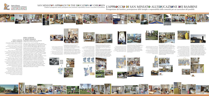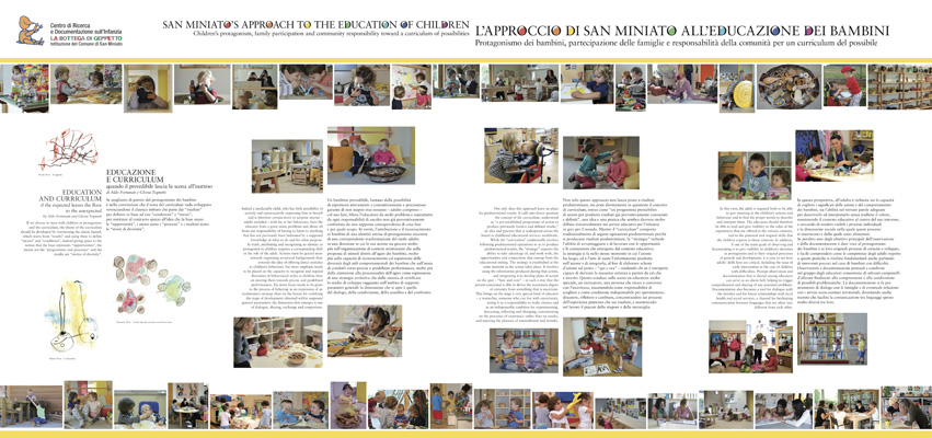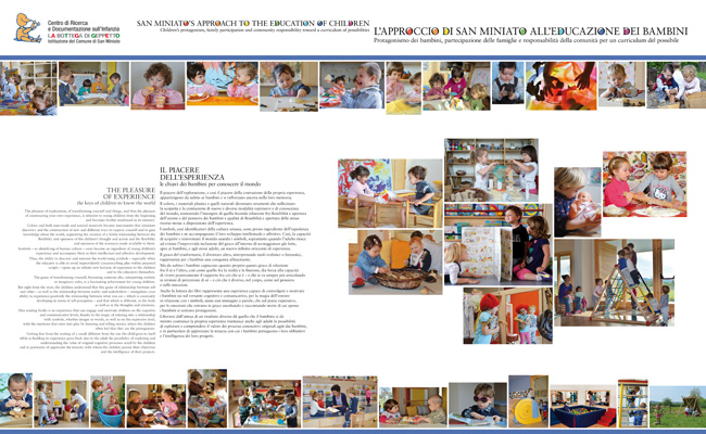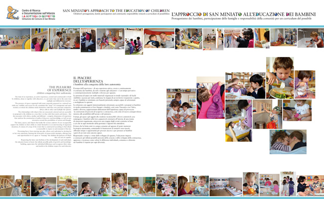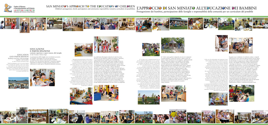 Documentazione La Mostra L'approccio di San Miniato all'educazione dei bambini Nell'area espositiva del Centro di Ricerca e Documentazione sull'Infanzia La Bottega di Geppetto trova ospitalità la mostra L'approccio di San Mniato all'educazione dei bambini, che contiene sezioni dedicate sia alla presentazione dell'assetto organizzativo del sistema dei servizi sia all'approfondimento delle principali direttrici del progetto educativo.
